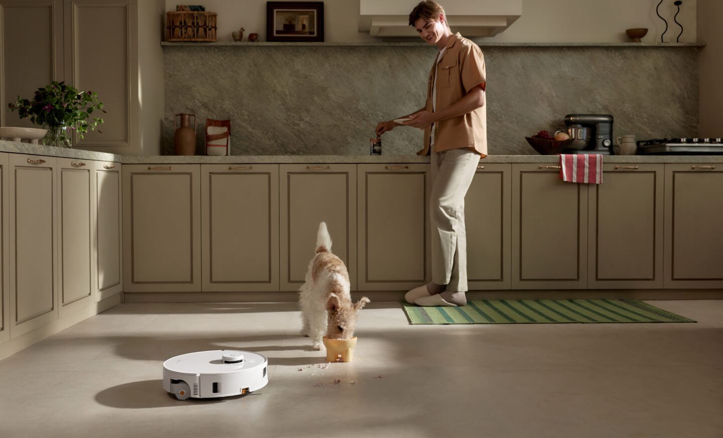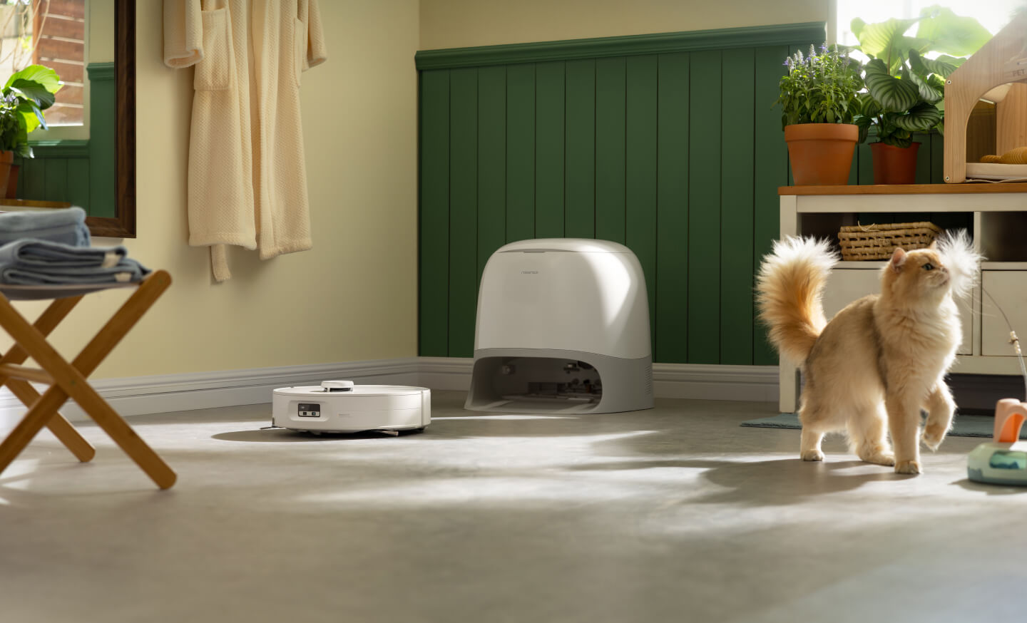 Når den nærmer seg kattunger eller valper, vil roboten umiddelbart stoppe hovedbørsten for å unngå å skremme kjæledyrene.
